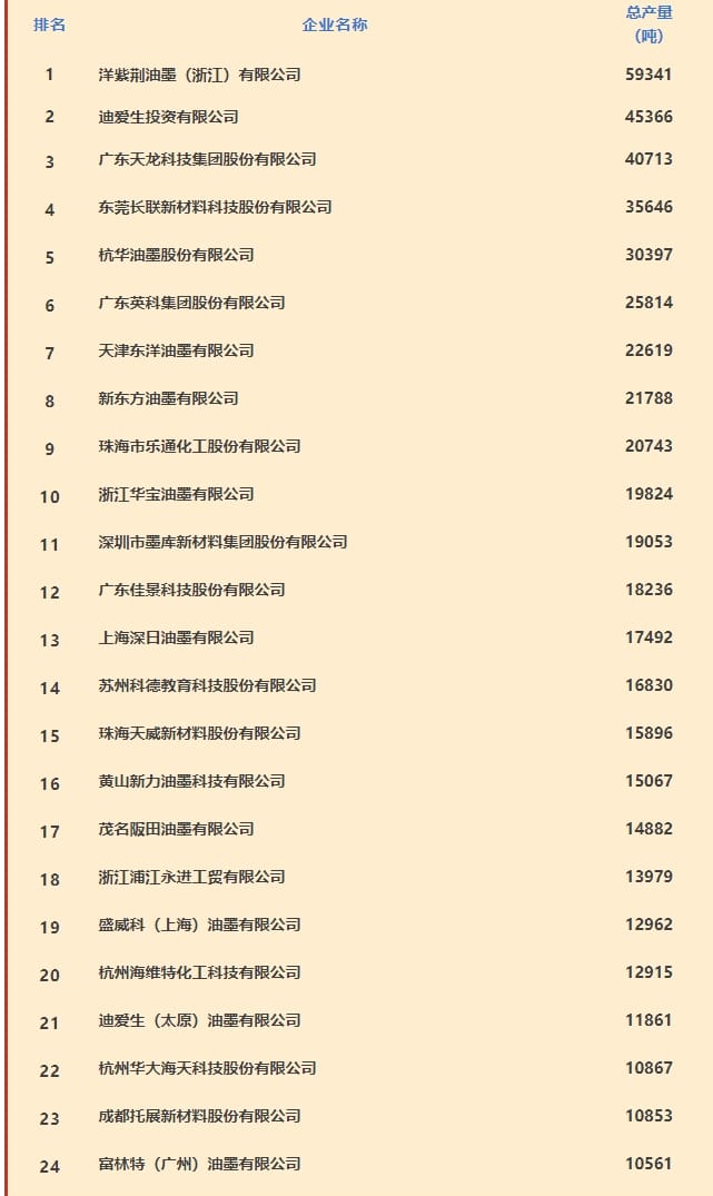 2024年度中國油墨行業企業經營狀況榜單揭曉