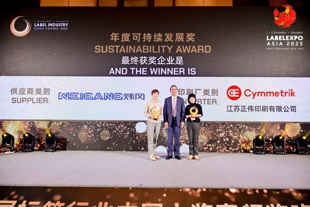 榮獲本屆“可持續(xù)發(fā)展獎(jiǎng)”的企業(yè)是江蘇正偉印刷有限公司與浙江煒岡科技股份有限公司。