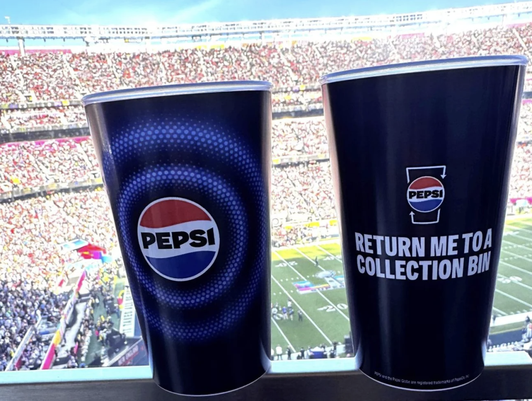 無獨有偶,可口可樂的老對手百事可樂也在去年與舊金山49人隊合作,在舉辦超級碗的利維斯體育場特定區域,引入耐用、可重復使用的杯子,替代傳統的一次性塑料杯。這標志著循環模式從零售場景延伸至大型線下活動。球迷在飲用后將杯子歸還至指定回收點,經過清洗消毒后可再次使用,系統性減少了單賽季數萬個一次性杯子的浪費。