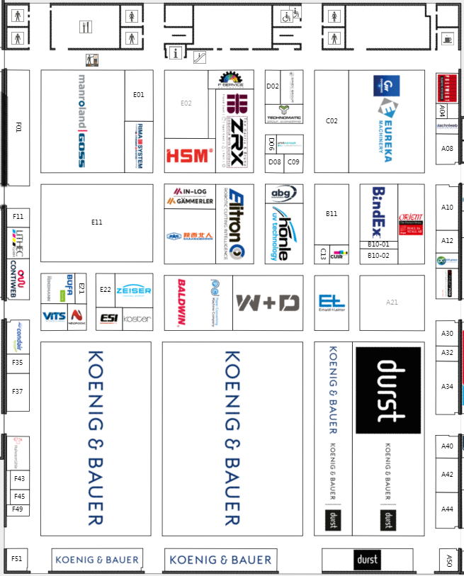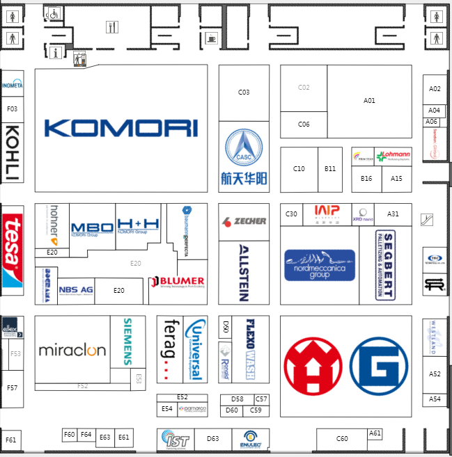 在約140000平方米的凈面積和18個展廳里,所有參展商都將展示各自印刷技術領域的發展趨勢和創新想法。其中,包裝生產和印刷包裝是兩個同樣重要的領域。眾多全球知名展商悉數在列,例如:Bobst,Canon,Comexi,Duplo,EFI,Epson,ESKO,Fujifilm,Heidelberg,Horizon,HP,Kodak,Koenig&Bauer,Kolbus,Komori,Konica Minolta,KURZ,Landa,Müller Martini,Ricoh,Screen,Windm?ller&H?lscher,Xeikon。觀眾可以在www.drupa.de上在線查看參展商的完整名單。
