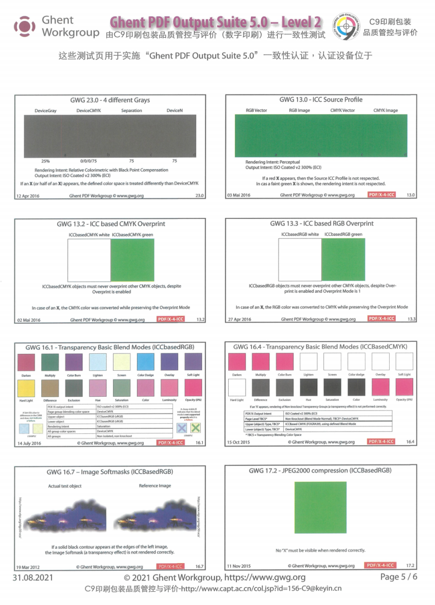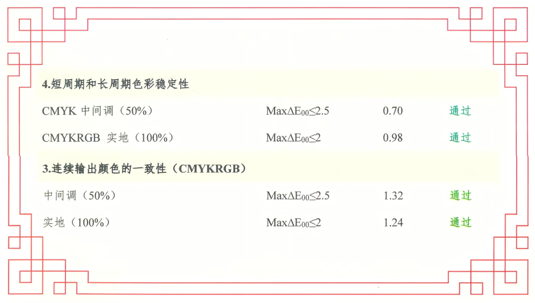 針對設備的色彩能力,還同時開展了“CMYK/RGB顏色連續性一致性評價”以及“50%中間調和100%實地顏色周期和長周期色彩穩定性評價”。