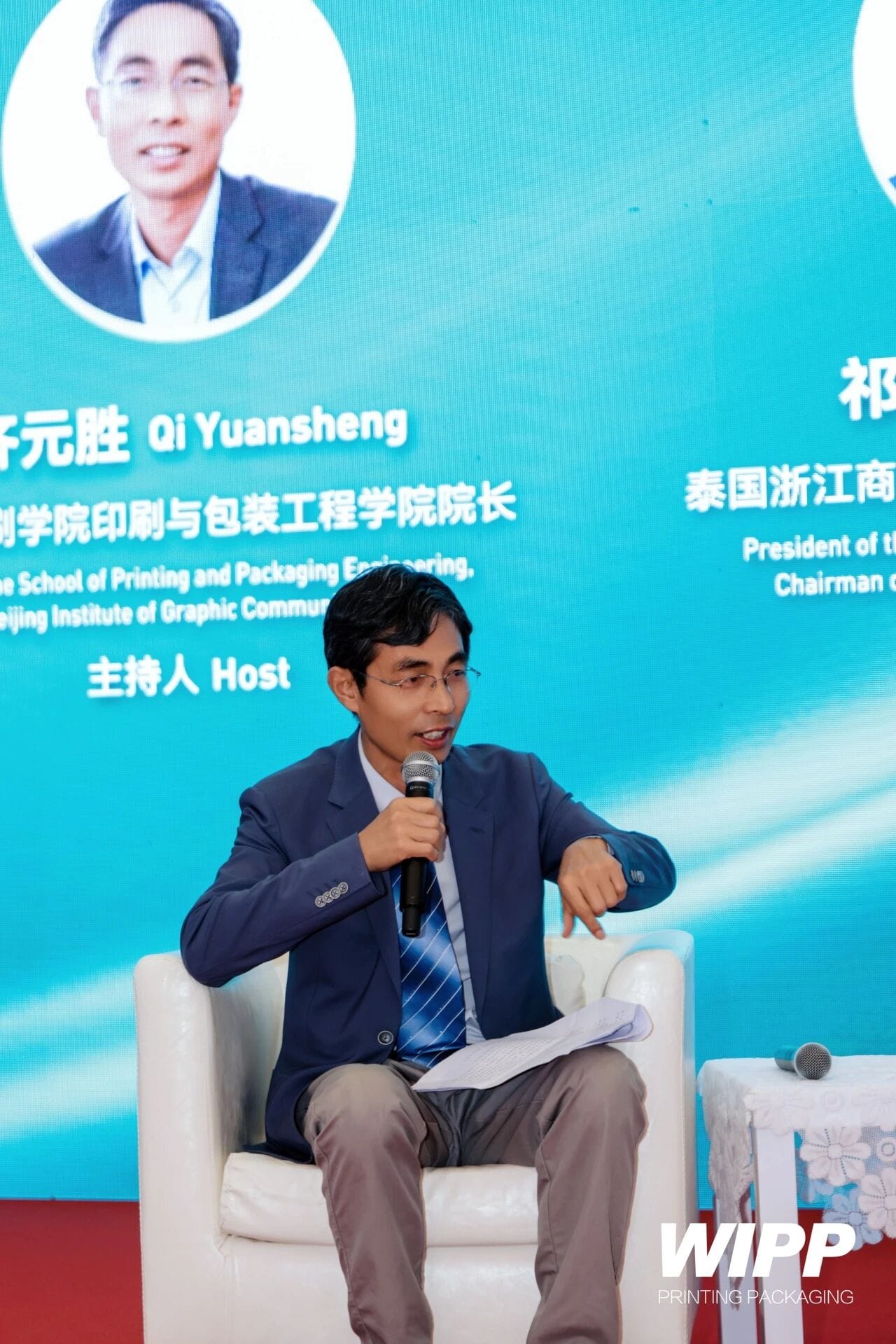 在發展中國家工程技術科學院院士、巴基斯坦工程院院士、北京印刷學院印刷與包裝工程學院院長齊元勝主持的會長對話環節,中國印刷及設備器材工業協會副理事長楊斌、泰國浙江商會會長、三信國際集團董事長祁曉云、馬來西亞印刷商公會會長張自明、深圳裕同云創總經理王少平等嘉賓圍繞“如何拓展RCEP及全球市場”展開深度探討。共識指出: