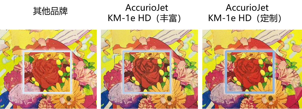 AccurioJet KM-1e HD采用了獨特的HS-UV墨水與固化系統,憑借其墨滴瞬凝技術,使得墨滴邊緣銳利,成像質量更高,層次感更豐富,可在多種材質上均可實現高質量印刷。